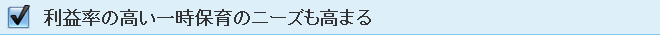 一時保育は利益率の高く保育所経営の利益確保が見込めます。
